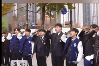 韩国高二学生高考考场外集体磕头应援:祝前辈上个好大学