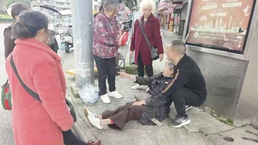 老人晕倒旁人围观 :体育老师“该出手时就出手”