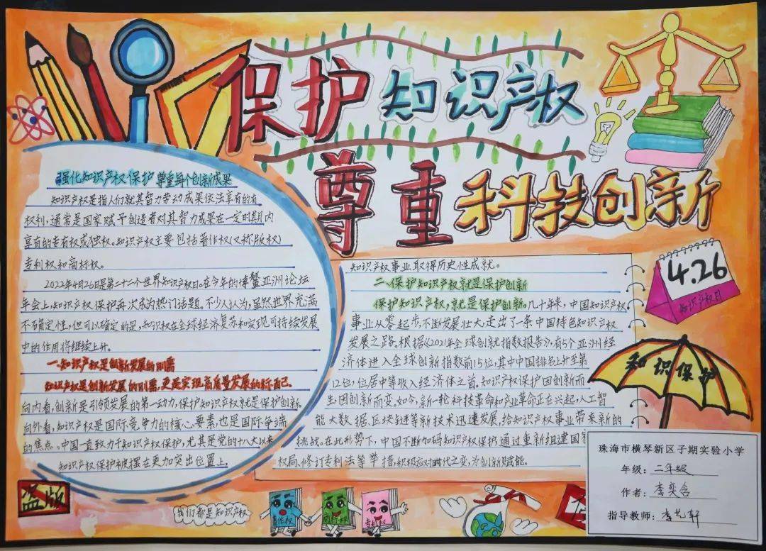 珠海市2022年“我们身边的知识产权” 中、小学生手抄报比赛