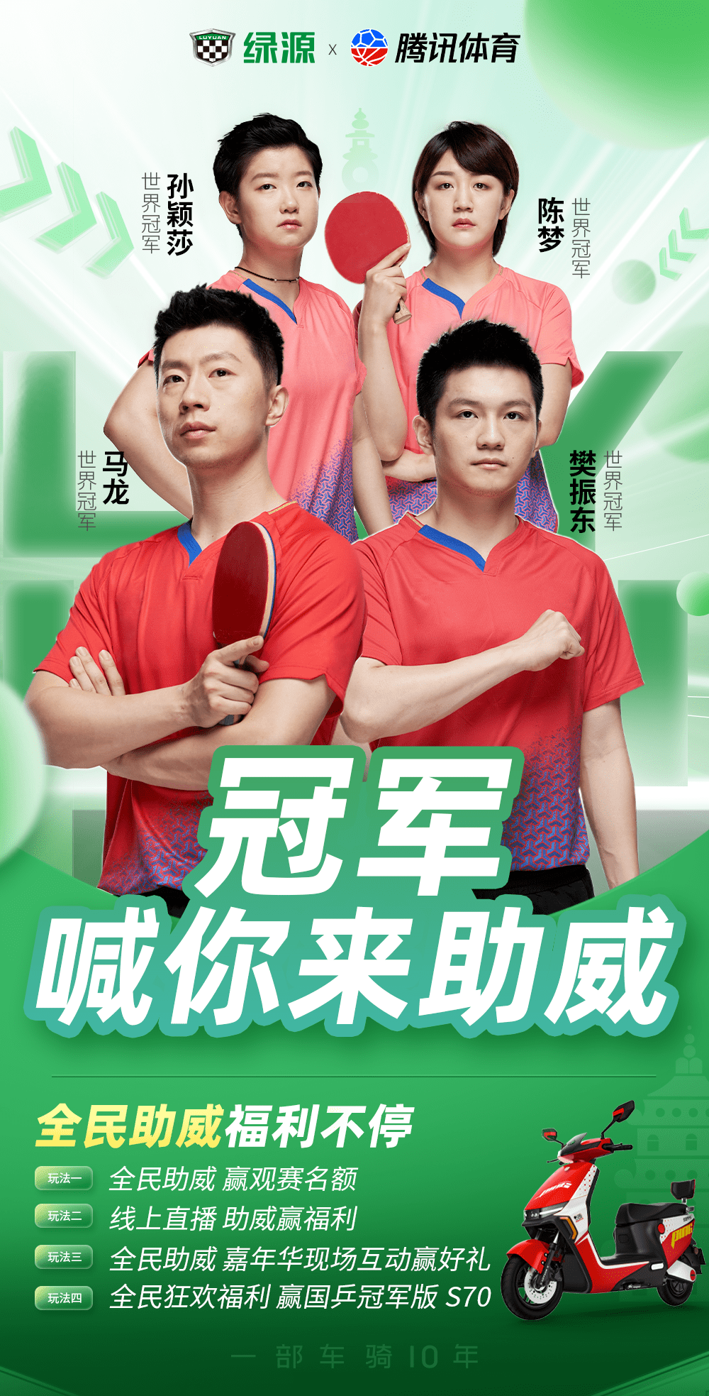 为冠军助威!全民为绿源嘉年华打CALL国乒,引爆全新热销高潮!