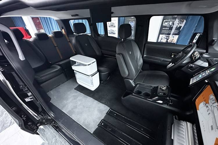 新车采用的是独特的“1+1+3”L型布局,副驾驶与第二排都只能坐一个人,再加上方盒子的车身造型,车内的空间将会变得更加开阔。另外,副驾驶与第二排空出来的位置可以当做开放性的行李空间,相比传统将行李放在后备厢位置,这样的存放方式将更加便捷。