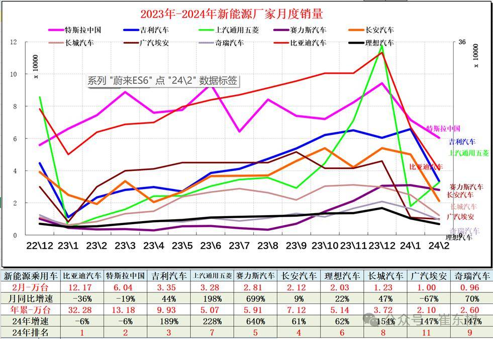 *【新能源】2024年2月新能源乘用车厂商批发销量快讯