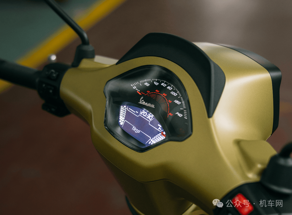 Vespa Primavera 150和Vespa Sprint 150系列均采用全新仪表盘,将模拟仪表和数字显示功能优雅结合,并配以3英寸液晶显示屏,实用信息一目了然。Vespa的车速表也巧妙兼容了设计感与功能性,可显示多种信息。通过选配的Vespa MIA多媒体平台,Vespa可与智能手机相连,在数字仪表盘上显示操作信息。