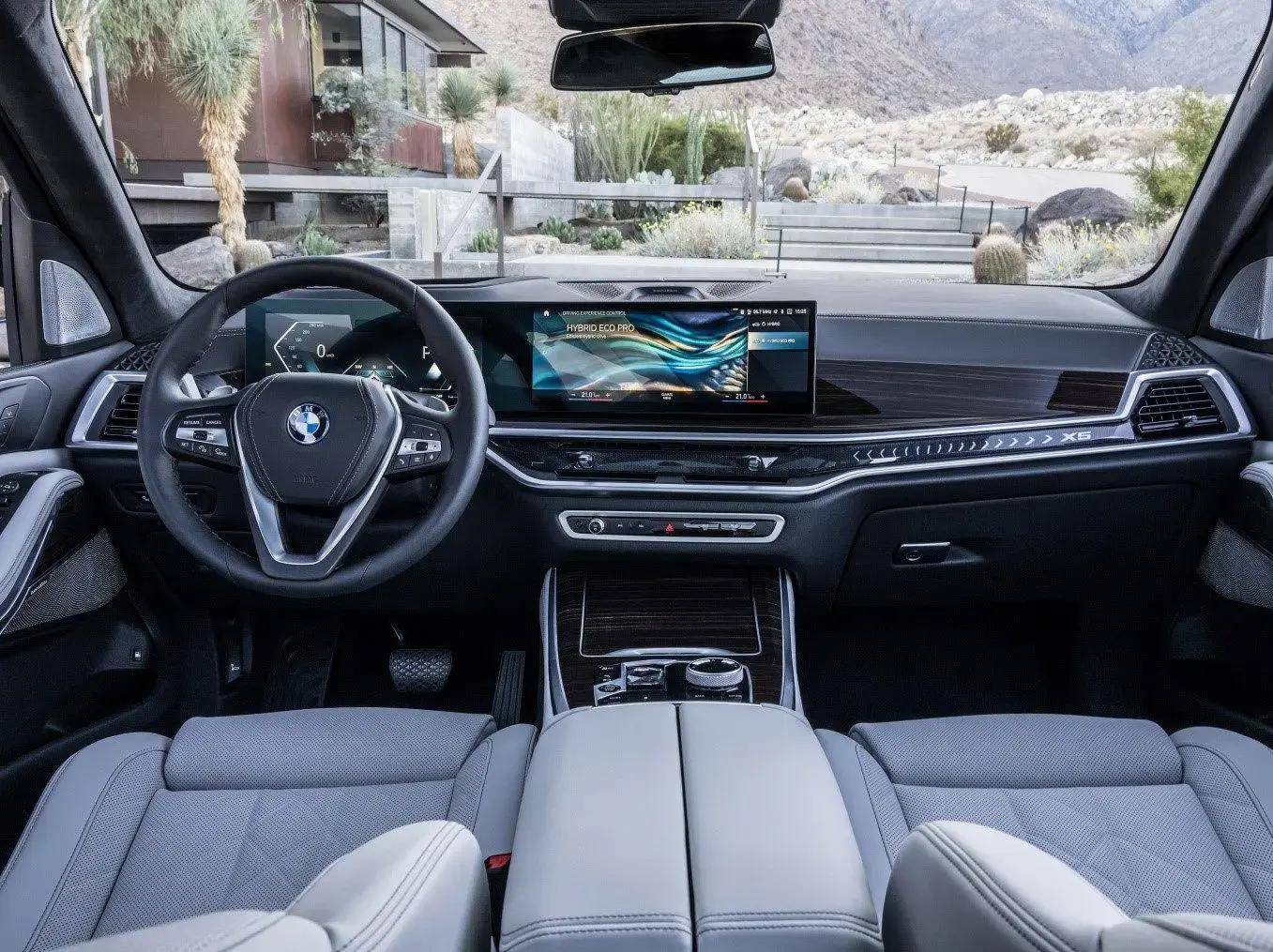 尺寸方面,其长宽高具体为5060mm、2004mm、1768(1776)mm,轴距达到3105mm。内饰设计上,车内座椅采用Sensafin高级软质合成皮包裹,并配合上菱形格纹和打孔的设计,都凸显了其高级感。中控台简洁大方,配备了12.3英寸仪表盘+14.9英寸中控屏的大联屏,内置最新一代iDrive系统,让车内科技感十足。
