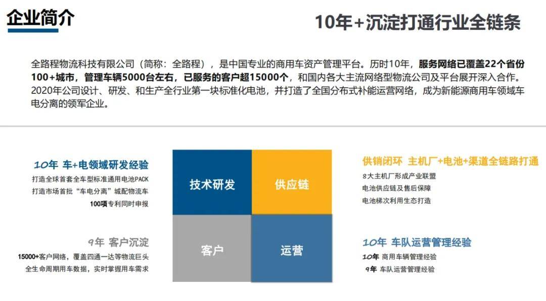 因为时间关系我就不多介绍了,因为我们是用10年的时间,我们是一帮懂物流的人,最后收购了一个非常专业的换电团队,来打造出一套换电物流车的全产业链。这是我们现在的合作伙伴,现在第一轮融资也拿到了红杉远景还有几个地方资本的加持,我们的资本计划是明年递报表,后年能够在美国上市,自己在海外讲的故事,我们是一家做能源梯次利用的公司,我们会把换电物流车的概念给到我们的合作伙伴去讲。这是我的联系方式,如果在座的各位有非常熟悉的您自己或者您自己的朋友,他在除中国以外的其他国家,除墨西哥、泰国、沙特、迪拜这几个国家以外,如果他在当地的关系非常好,他又对车辆有一定的了解,他手上又有两三千万的闲置资金,他想要做一个属于当地的品牌,在美国上市的话欢迎您联系我,希望我们能够合作共赢,谢谢大家。