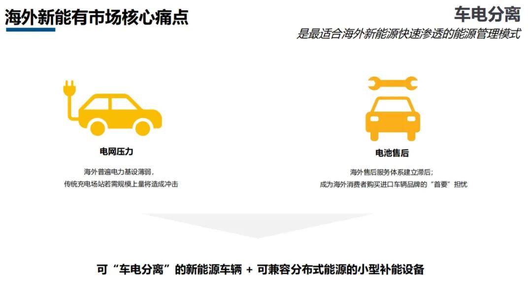 刚才听很多人在讲,现在很多的新能源车出口,但是绝大部分都是在家用车,因为家用车对充电没有那么大的需求,比如说我回到家220伏转成直流电,慢就慢一点了,但是商用车我们要求高效的来给这个汽车充电,当它跑回来以后,我们最希望的它能够,在物流业里面有一句话叫做人停车不停,这样的场景是每个物流公司梦寐以求的,但是如果充电车跑完200公里回来充电,至少补一个电,半个小时一个小时两三个小时没了,一天的有效工作时间就会大大的受到影响。而且我们这套解决方案,刚才听到很多同仁在讲,现在我们去了很多地方,埃塞俄比亚、埃及,很多地方太阳能非常充足,电网非常弱,其实这个时候我们就可以非常好的跟中国出口的太阳能企业配套来打一套组合拳,有人投光伏,光伏投上去以后,如果你没有办法很好的消化到产业,其实投资回报率是很差的。把光伏铺上去,再把光储充换一体柜铺上去,再把换电物流车装上,这是一个非常完美的解决方案。