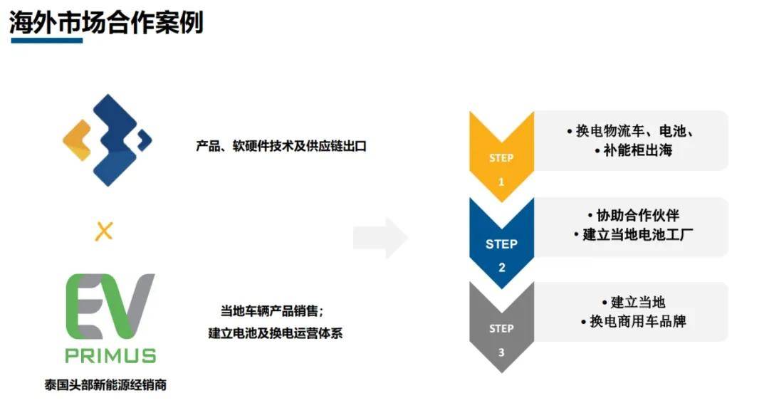 全路程现在在几个国家也设立了自己的分公司,比如说在泰国,我们跟泰国一起合作成立了一个泰国的公司,全路程负责产品技术供应链的出口,泰国公司负责当地车辆的产品销售,建立整个电池以及换电体系的运营。我经常跟这个董事长说,现在的做做生意的逻辑是这样子,第一你是一家泰国的公司,你用泰国的技术,尽管这个技术是我出给你,但是我要授权给你,你用泰国的技术,生产出属于泰国的换电物流车,来供给整个东南亚的物流市场,拿投资者的钱在美国上市,你觉得这个成不成立?他听完非常兴奋,因为他早年整个家族都是在做汽车供应链进口的,虽然现在生活非常好,他现在也是全中国最大的一家商用车的泰国总代理,但是他一直有自己的一个汽车的,请各位记住,其实每一个国家想要工业强国最主要的都要从汽车开始,而全路程可以赋能,第一步就是换电物流车跟电池的出海,然后在当地进行试跑以后验证,当地的气候,当地的网络环境,当地的很多东西适合,接下来就可以在当地成立KD工厂,共同来成立当地的一个品牌,属于当地自己的商用车。