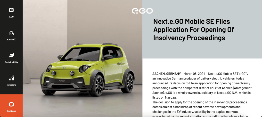 6月8日,德国明星电动汽车公司——Next.e.GO Mobile(下称“e.GO”)宣布正式停止业务运营。至此,又一个造车新势力倒下。