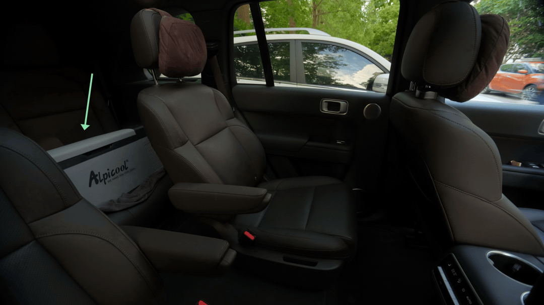 (图:为了不影响后备箱容积率,我专门牺牲了一个座椅来安放冰箱)