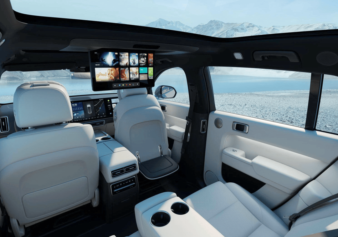 正是因为多了这十几厘米,第二排乘客观看后排娱乐屏时,距离也可以更远了,看上去也更舒服,不过我问过俩屁孩,她们体验后没觉得有啥区别,可能是我眼睛开始老花了,看近的东西都有压迫感了,流媒体后视镜那种车我就很受不了。
