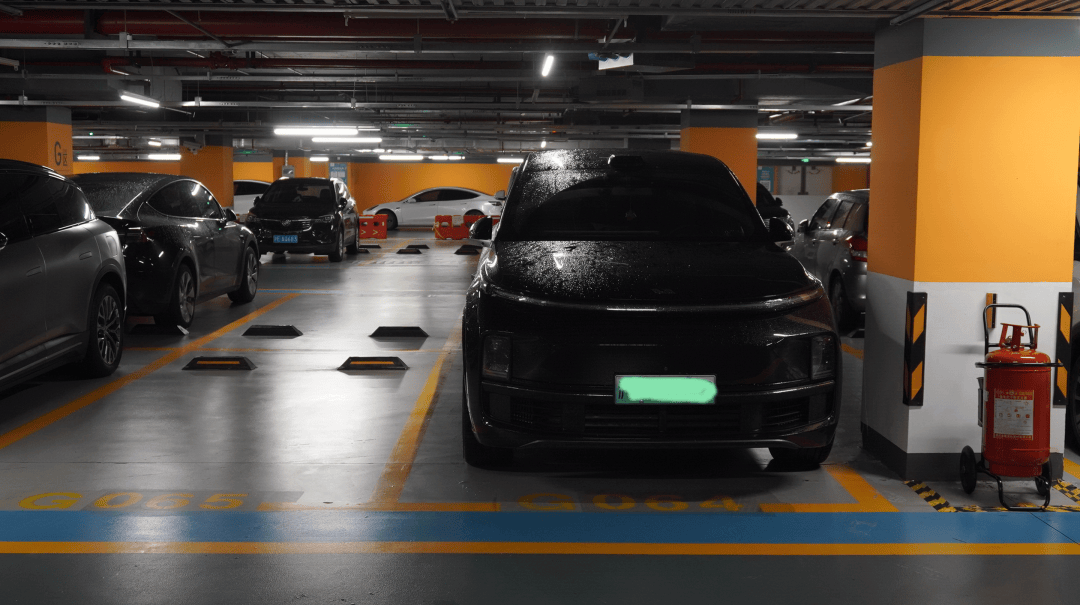 (图:靠近柱子的停车位,它居然知道要往边上贴,为另一侧开门留出空间)