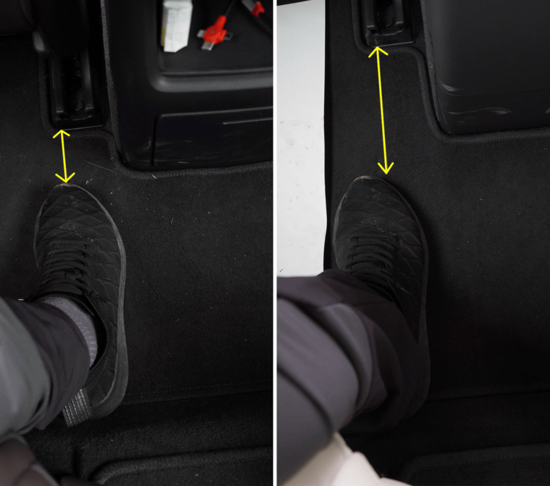 (图:当L6的前排调为我的坐姿时,后排的膝部空间展示)