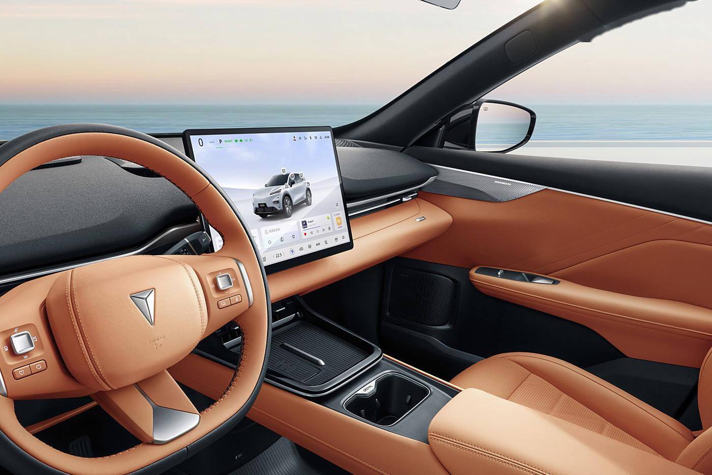 内饰方面,新车采用全新的设计风格,平直的中控台线条配合三辐式多功能方向盘、悬浮式中控屏,整体营造出不错的视觉效果。同时,贯穿式的空调出风口造型也丰富了其中控台的视觉层次感。此外,该车在手枕处配有手机放置区域或配备无线充电功能。