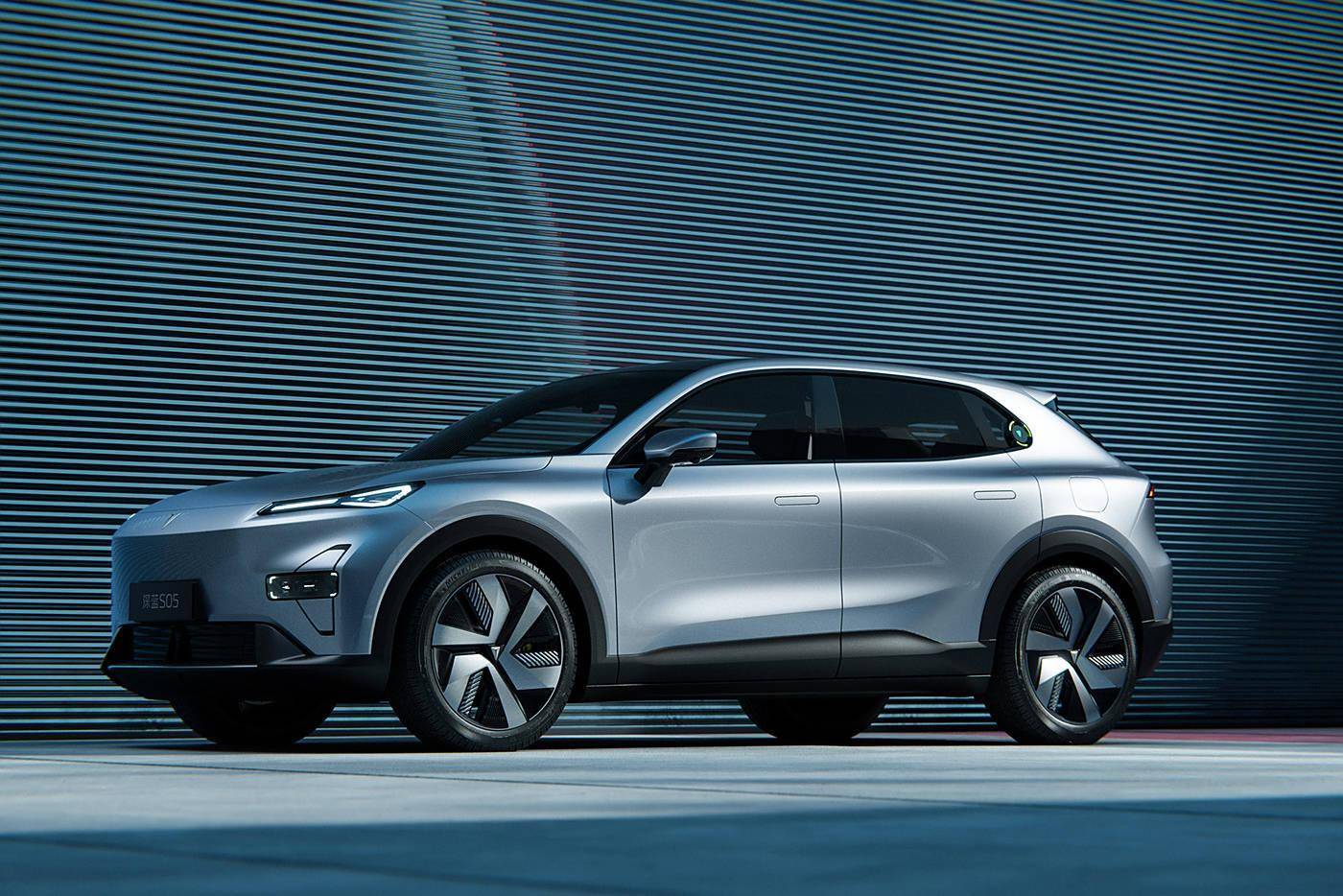 深蓝S05的外观采用了不同于深蓝在售车型的设计语言,整体观感圆润饱满。车头处封闭式前格栅上是狭长的大灯,结合下方飞机机翼般的装饰件,使其看上去十分具有科技感。新车侧面采用双腰线设计,配合隐藏式门把手,造型非常动感。车尾配备了贯穿式尾灯组,中央的深蓝LOGO可以点亮。