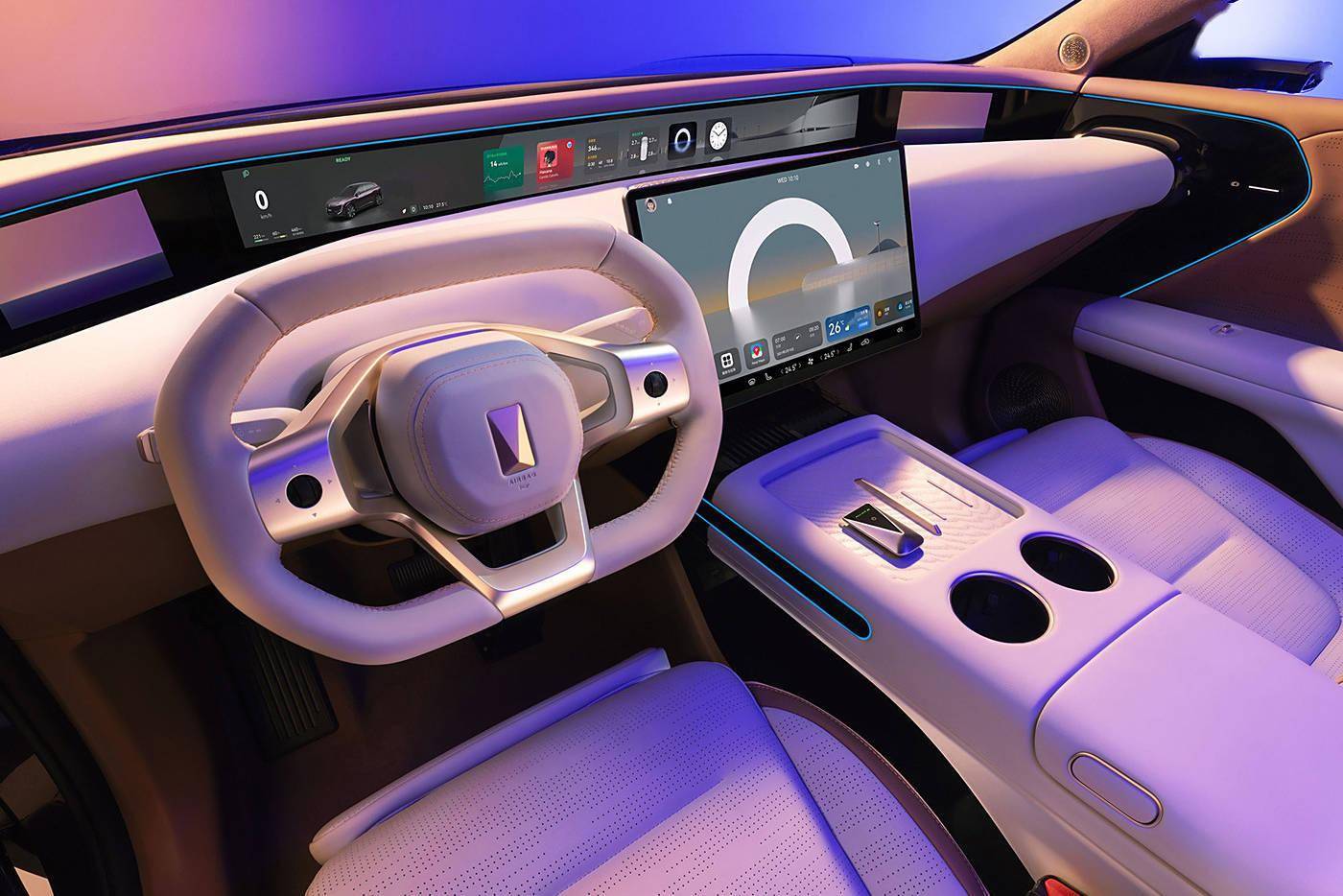 内饰部分,阿维塔07配备15.6英寸中控屏和35.4英寸4K一体式远端屏,搭配平底式多功能方向盘及拨杆式换挡机构。此外,阿维塔07还将配备手机无线充电、实体钥匙、电子外后视镜、25扬声器英国之宝音响等配置。阿维塔07配备双零重力座椅,配合按摩和通风功能,支持一键零重力、加热和通风远程启动、座椅礼让、靠背防夹、休憩/观影/嗨唱等座椅联动功能。