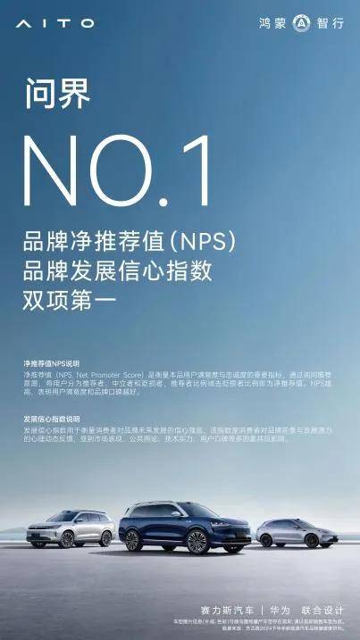 不仅销量节节攀升,两款车的口碑同样受到用户与业界的一致认可。据知名调研机构杰兰路《2024下半年新能源汽车品牌健康度研究》显示,问界M9和问界M7分别荣获新能源SUV车型净推荐值第一和第三,与此同时,问界也荣登品牌净推荐值(NPS)、品牌发展信心指数双项桂冠宝座。