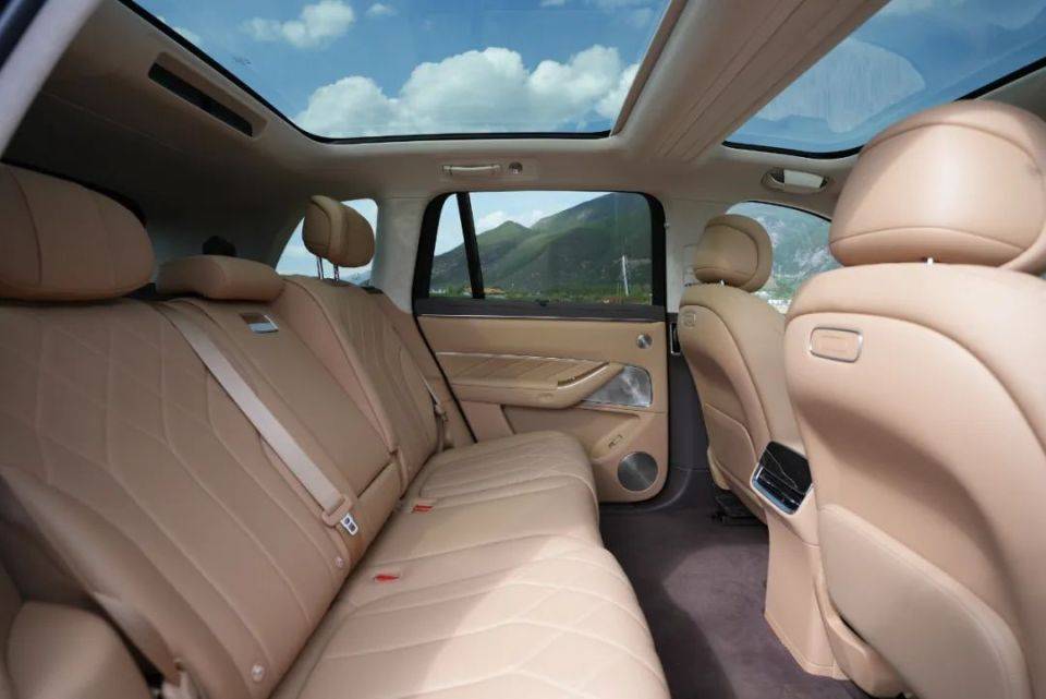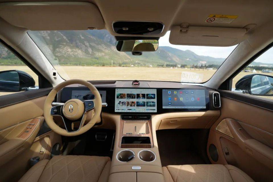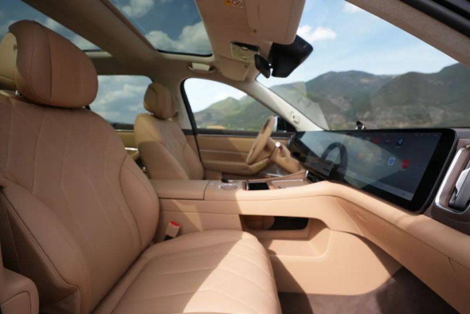 内饰方面, 内饰采用双环抱式座舱设计。配色上标配“白沙杏”和“赤茶橘”,可选装“琥珀棕”和“星云红”配色。内饰用料,大量采用NAPPA真皮、超纤麂皮车顶、中控和车门把手处木纹饰板,应用3D-mesh包裹工艺。提供三排六座、双排五座两种布局,其中,六座版右后标配零重力座椅,五座版右后搭载准零重力座椅。主驾标配加长腿托、副驾支持芭蕾折叠双享座椅。