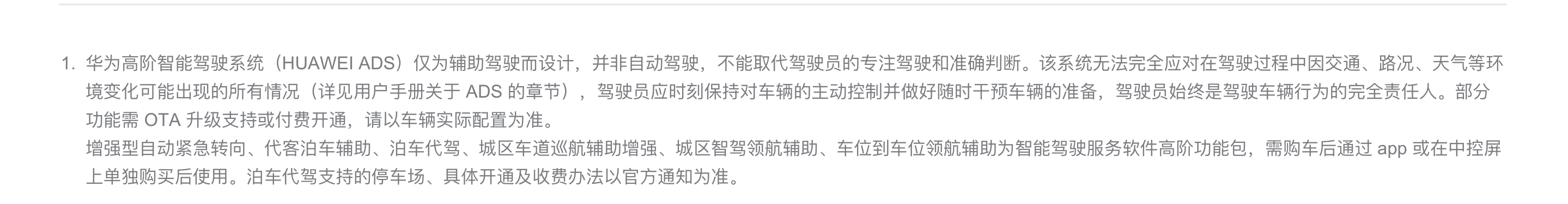 另一边,鸿蒙智行官网对问界M8的ADS功能介绍时,虽然采用了“华为高阶智能驾驶系统”,但在文末备注“华为高阶智能驾驶系统(HUAWEI ADS)仅为辅助驾驶而设计,并非自动驾驶,不能取代驾驶员的专注驾驶和准确判断。”