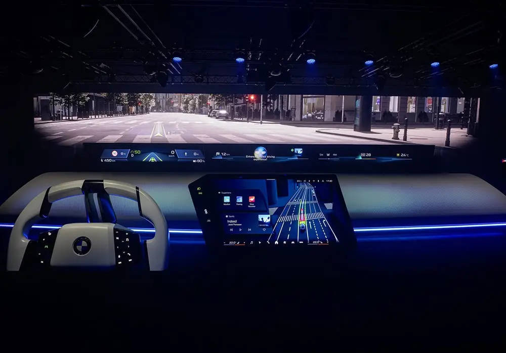 内饰方面,iX3采用了行业首创的“视觉锥”布局,视平线全景显示系统通过超近距投影技术,在挡风玻璃上投射出近40英寸、4K分辨率的清晰画面,对比度高达100000:1。纳米涂层挡风玻璃使得成像效果更为出众,即便佩戴偏光墨镜也能轻松阅读导航信息和车辆状态,成像距离在4至9米之间,与真实路况无缝融合,带来前所未有的驾驶沉浸感。