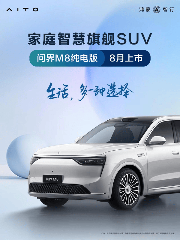 问界M8纯电版将于8月上市 安全、智能、续航三王牌齐发