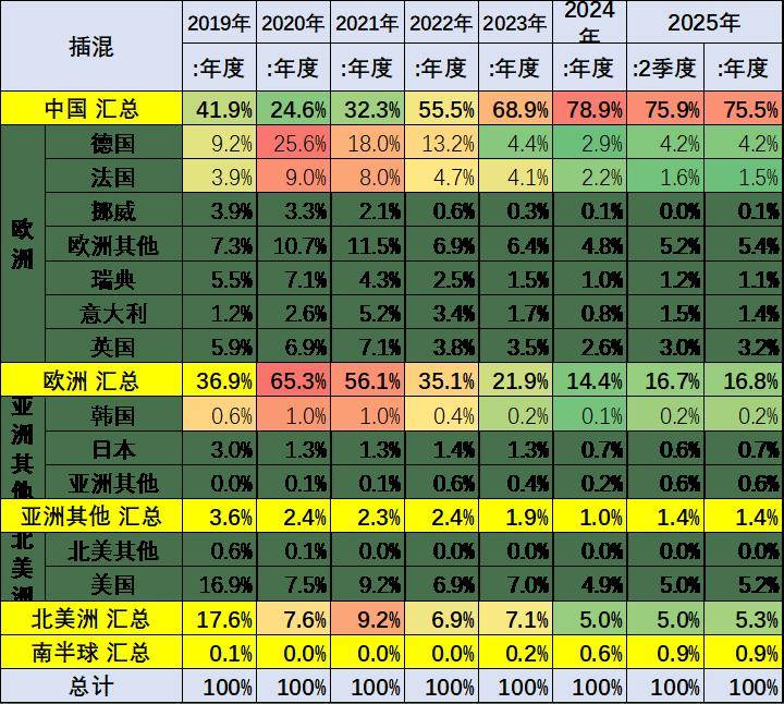 2025年1-6月中国占世界新能源车份额68%、自主海外新能源份额13%