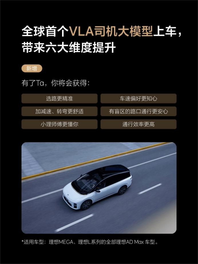 ▍理想汽车OTA 8.0开启推送:全球首个VLA司机大模型上车;称辅助驾驶和智能座舱进入“全面领先”